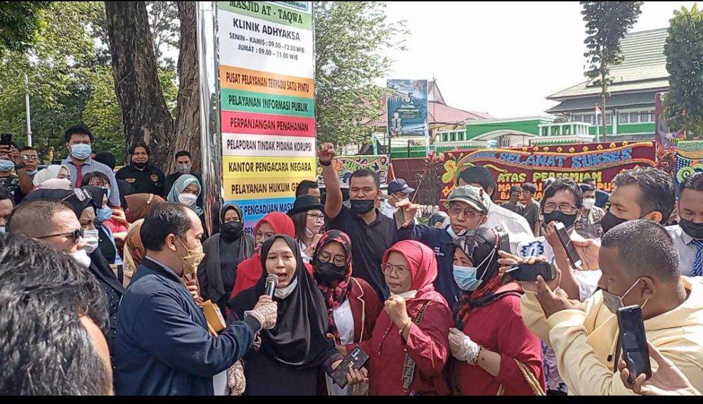 Aksi demonstrasi ini dilakukan guna menuntut rekan Advokat Tengku Ardiansyah dibebaskan dari tahanan.