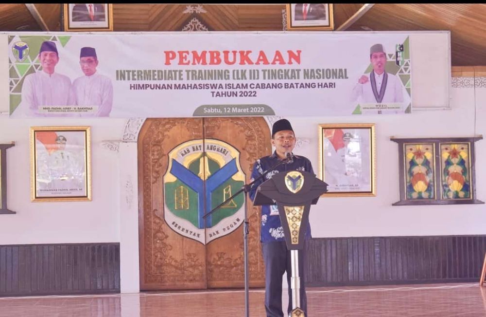 JAMBERITA.COM- Ketua MD KAHMI Kabupaten Batanghari Akmaluddin menghadiri Pembukaan Intermediate Training (LK II) Tingkat Nasional HMI Cabang Batanghari Sabtu (12/3/2022). Dalam kegiatan ini, Anggota DPRD Provinsi Jambi berharap forum LKI bisa menghasilkan calon pemimpin bangsa.
