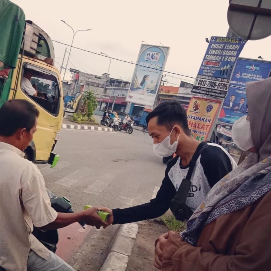 JAMBERITA.COM- Sejumlah Mahasiswa Universitas Jambi yang tergabung dalam Kesatuan Aksi Mahasiswa Muslim Indonesia (KAMMI) Komisariat At-tahrir mengadakan bakti sosial dengan membagi-bagikan takjil gratis menjelang berbuka puasa di simpang 3 lampu merah simpang rimbo, Pada Sabtu sore (09/04/2022).