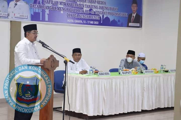 JAMBERITA.COM - Bupati Tanjung Jabung Barat Drs. H. Anwar Sadat, M.Ag Hadiri sekaligus Membuka Training Center Tahap Kedua Kafilah MTQ Kabupaten Tanjung Jabung Barat Dalam Rangka Menghadapi MTQ Ke-51 Tingkat Provinsi Jambi di Kota Sungai Penuh, Sabtu(14/05/22).