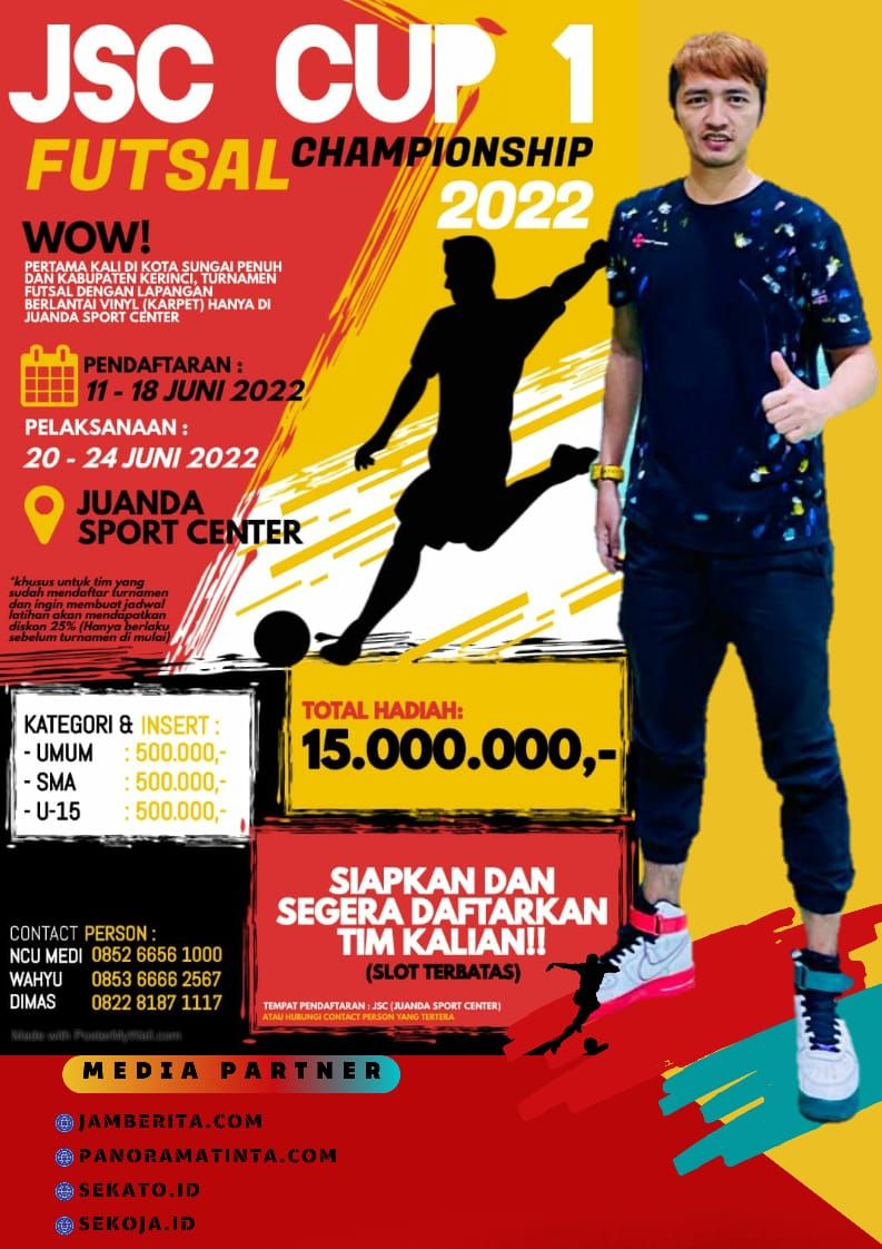 "Kerinci-Sungai Penuh punya banyak sekali talenta-talenta berbakat dan berkualitas di bidang olahraga futsal. Jadi dengan adanya JSC Cup I ini, kita ingin mendorong serta menfasilitasi mereka agar bisa unjuk prestasi dan nantinya bisa mengharumkan nama daerah hingga ke tingkat nasional," ungkap CEO JSC, Juanda Albert, Minggu (19/6).