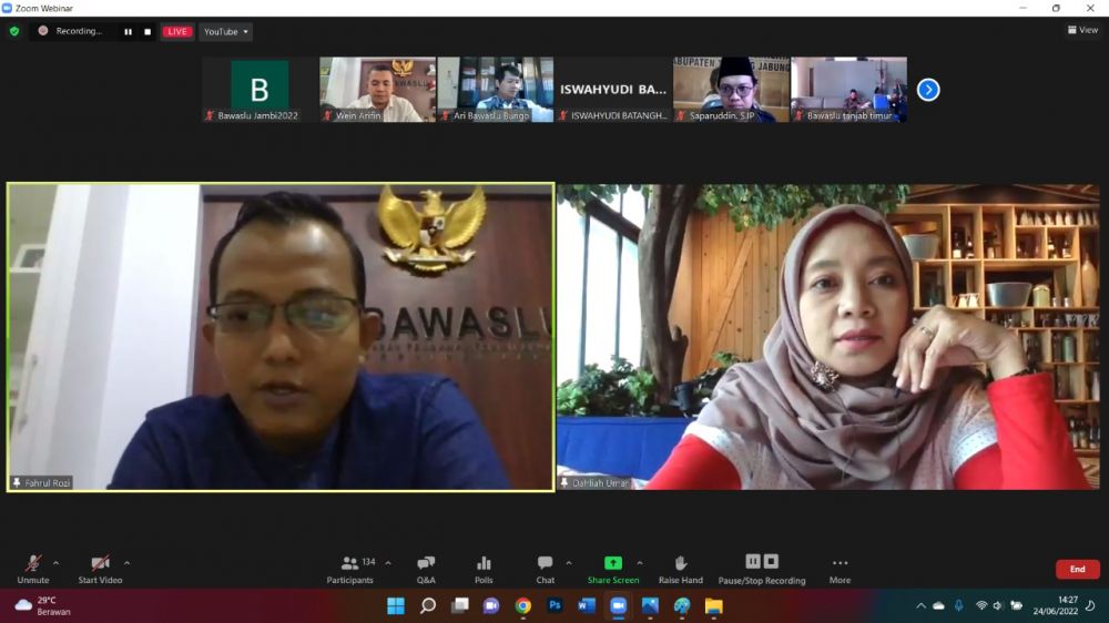 "Jadi penyelenggara pemilu jangan hanya mengejar jabatan dan pendapatan," katanya ketika menjadi narasumber dalam webinar yang diselenggarakan oleh Bawaslu Provinsi Jambi, Jumat (24/6/2022).