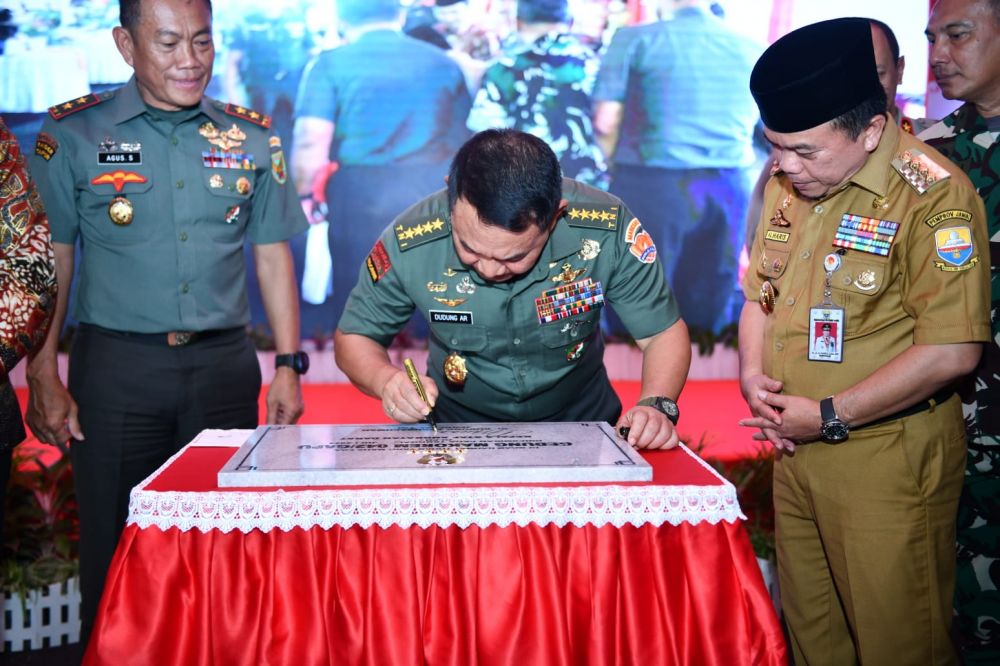 JAMBERITA.COM - Kepala Staf Angkatan Darat (Kasad) Jenderal TNI Dudung Abdurachman meresmikan gedung baru Markas Korem (Makorem) 042/Gapu. Selasa, (19/7/2022).