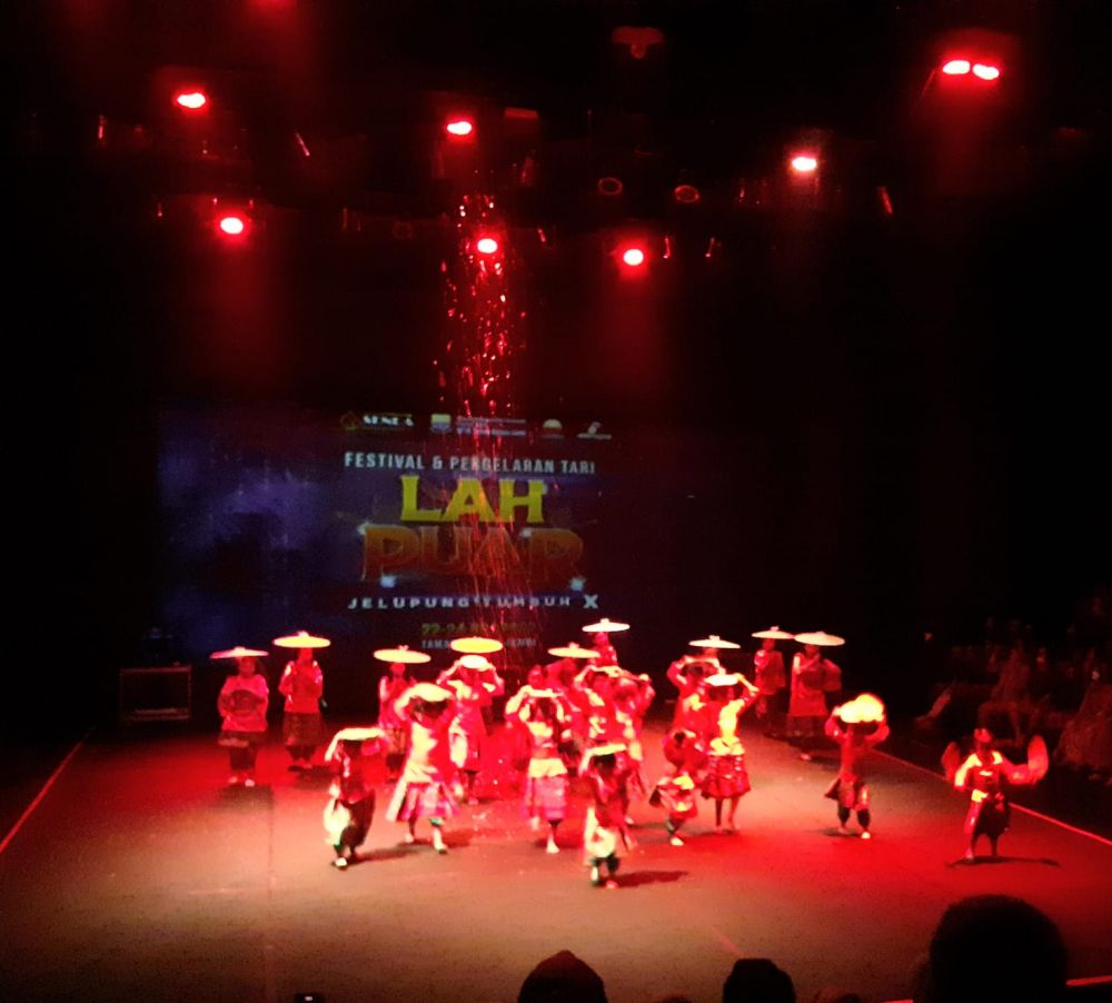 Gedung Teater Arena Taman Budaya Jambi di padati penonton untuk menyaksikan penutupan festival tari Lah Puar Jelipung Tumbuh yang ke sepuluh, festival tari yang berakar dari tradisi ini di selenggarakan oleh sebuah sanggar, yang bernama Sekintang Dayo, penyelenggaraan festival swadaya ini. awalnya hanya di selengarakan secara sederhana di pelataran Taman Budaya Jambi, namun saat ini pesertanya datang dari kabupaten kota se provinsi Jambi, festival ini tetap berkomitmen mengangkat karya karya yang mesti berakar dari tradisi di tengah masyarakat lokal, yang secara tak lansung memperkuat proses proses pelestarian, pewarisan dan penanaman nilai nilai tradisi pada anak anak dan generasi muda.