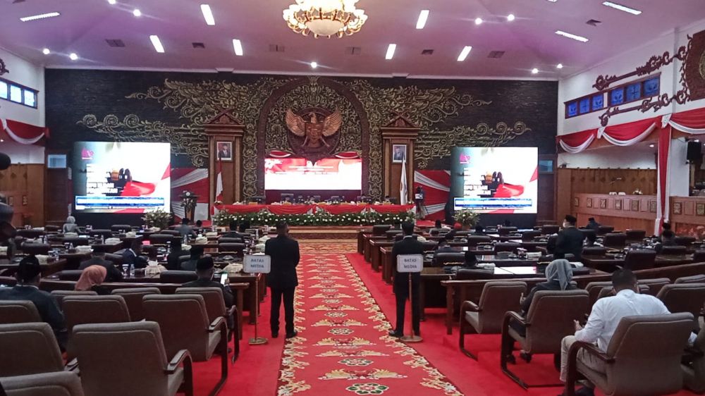 Al Haris mengikuti rapat paripurna tersebut secara virtual dari gedung Dewan Perwakilan Rakyat Daerah (DPRD) Provinsi Jambi. Selasa, (16/8/2022).