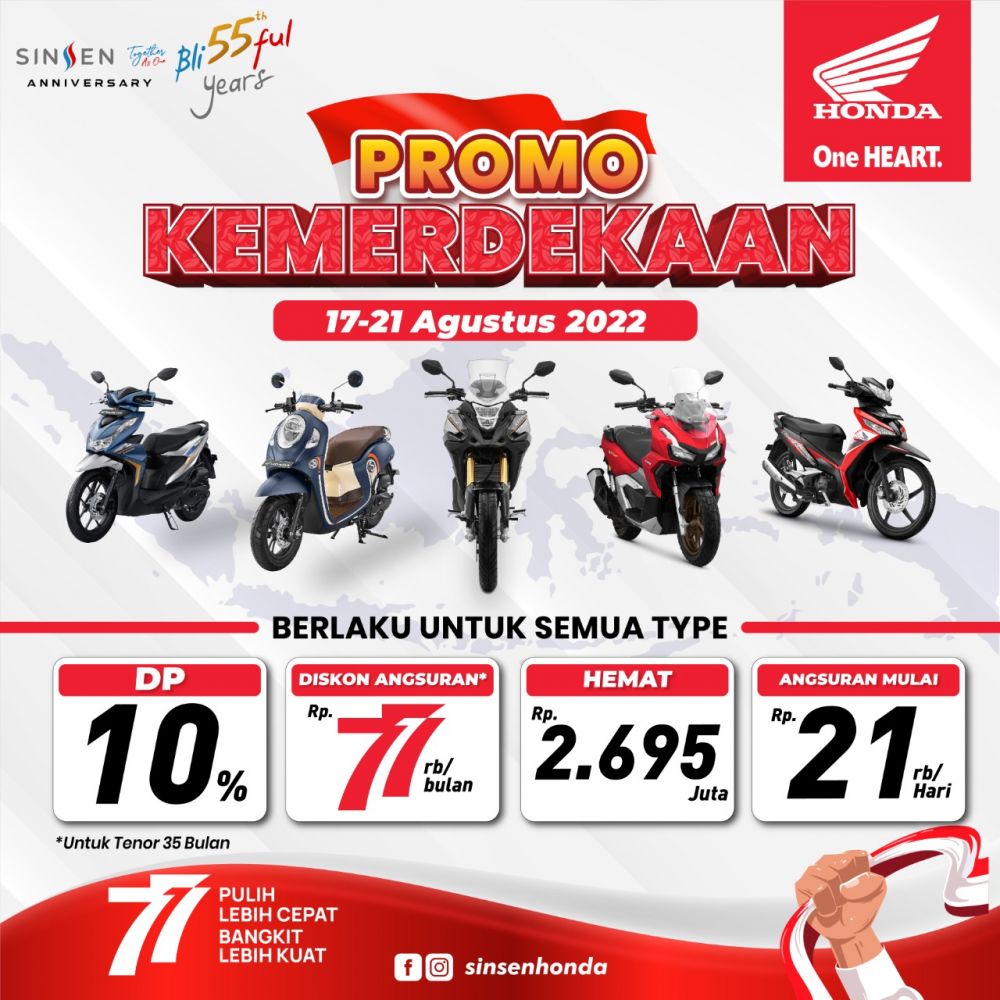 Manager Marketing Sales Sinsen Hendy Tanova mengatakan bersama 48 jaringan Dealer Resmi sepeda motor Honda di Provinsi Jambi, kami menyajikan program kemerdekaan yang berlaku untuk semua type.