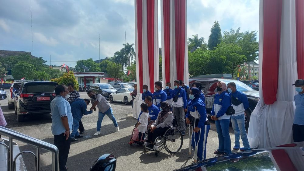 AMBERITA.COM - Menjelang rapat paripurna DPRD Provinsi Jambi tentang pengambilan kesepakatan Kebijakan Umum Anggaran (KUA) Prioritas Plafon Anggaran Sementara (PPAS) APBD 2023 Jum'at (20/8) pagi tadi, sempat diwarnai aksi dari atlet disabilitas Provinsi Jambi datang ke Gedung DPRD.