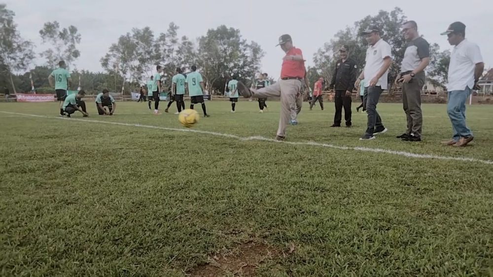 JAMBERITA.COM, MERANGIN - Bupati Merangin Mashuri buka turnamen bola kaki di Mampun Baru Cup 2022, Desa Mampun Baru Kecamatan Pamenang Barat, Merangin.