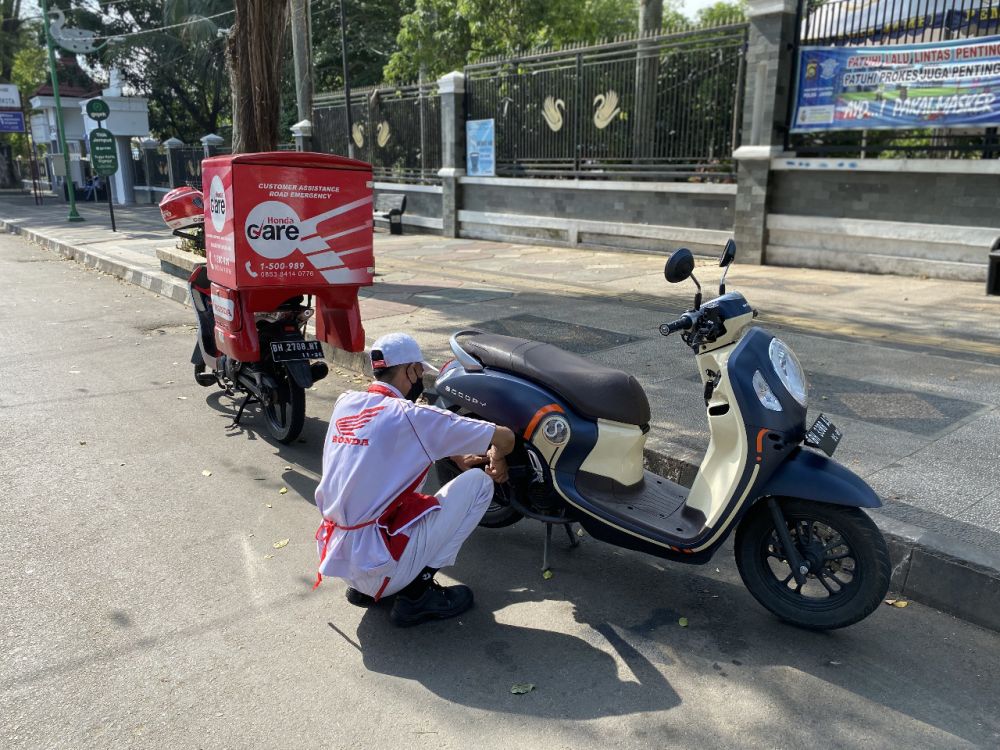 JAMBERITA.COM- PT Sinar Sentosa Primatama (Sinsen) main dealer sepeda motor Honda di Provinsi Jambi bersama jaringan bengkel resmi Honda (AHASS), menghadirkan layanan Road Assistance yang disebut Honda CARE.