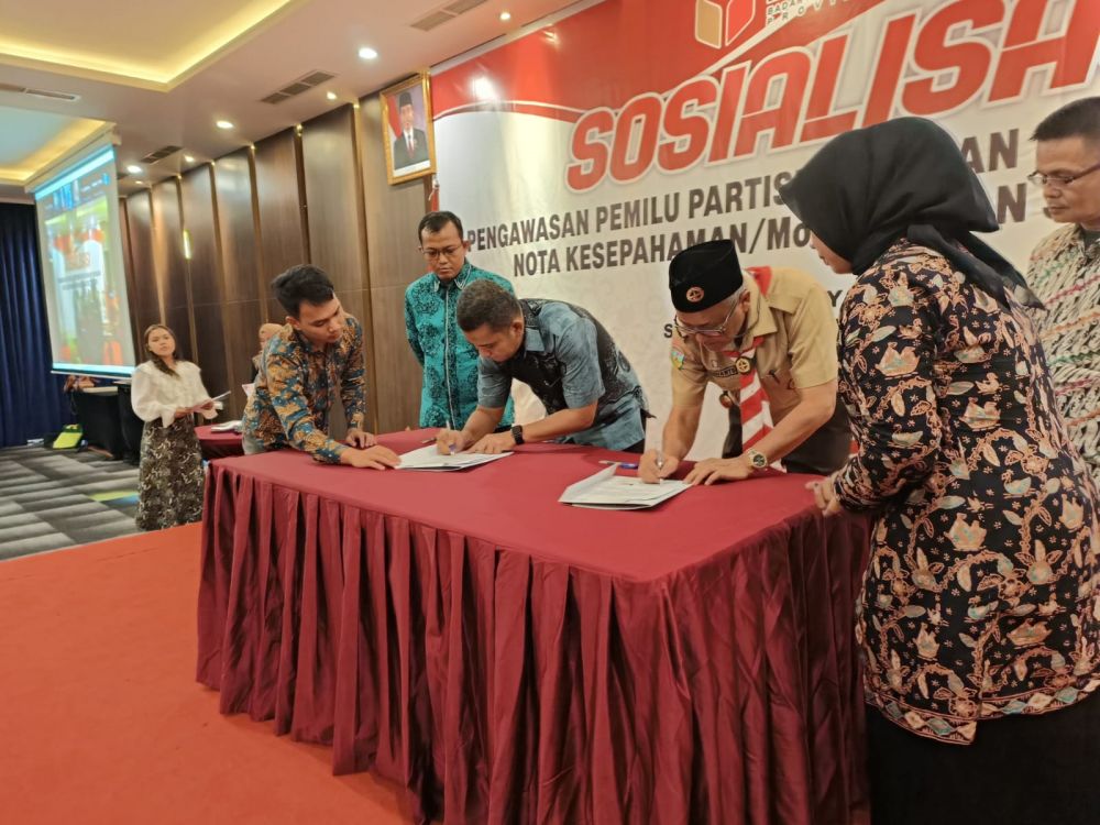 Bawaslu Provinsi Jambi Gelar Sosialisasi Pengawasan Pemilu Partisipatif dan Penandatanganan Mou