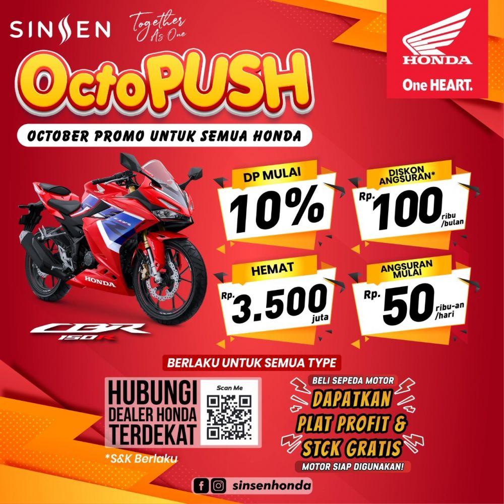JAMBERITA.COM– Mengawali bulan Oktober ini, PT Sinar Sentosa Primatama (Sinsen) main dealer sepeda motor Honda di Provinsi Jambi memberikan program spesial bertajuk “OCTOPUSH (October Promo Untuk Semua Honda)”.
