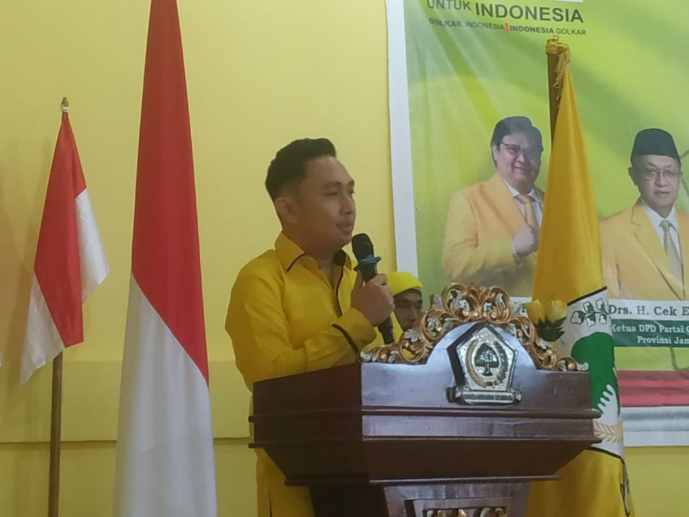 JAMBERITA.COM- Ketua DPD II Golkar Sungai Penuh, Fikar Azami memiliki tantangan besar menghadapi Pemilu 2024. Salah satunya mengembalikan perolehan kursi partai berlambang pohon Beringin yang menurun pada Pemilu 2019 lalu.