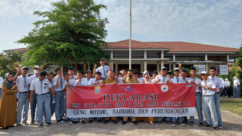 Selanjutnya, Kepala SMKN 6 Kota Jambi Endra Gunawan membenarkan telah dilakukan deklarasi secara serentak termasuk di sekolah nya."Ini merupakan tindaklanjut dari instruksi pak Kadis, agar anak anak tidak ikut terlibat dalam aksi tersebut, karena mereka harus fokus belajar menggapai cita cita, bukan di jalanan," jelasnya.