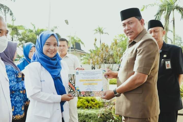 Usai upacara peringatan HKN ke-58, dilanjutkan dengan penyerahan penghargaan kepada Tenaga Kesehatan Teladan, penyerahan sertifikat program TBC, penyerahan sertifikat partisipasi Rekor Muri Gerakan Nasional aksi bergizi secara serentak dalam upacara percepatan penurunan stunting dan penyerahan sertifikat pelayanan kesehatan kepada ibu dan anak dalam rangka penginputan data Jampersal tertinggi di aplikasi E-Kohort tahun 2022. (fir)