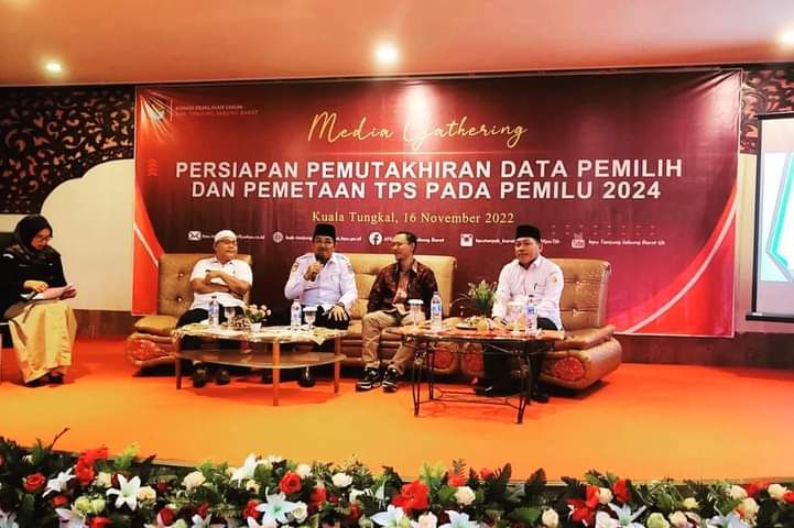 JAMBERITA.COM - Bupati Tanjung Jabung Barat Drs. H. Anwar Sadat, M.Ag menghadiri Media Gathering dalam rangka Persiapan Pemutakhiran Data Pemilih dan Pemetaan TPS pada Pemilu 2022 yang diselenggarakan oleh KPU di aula Tungkal Hotel, Rabu (16/11/22).