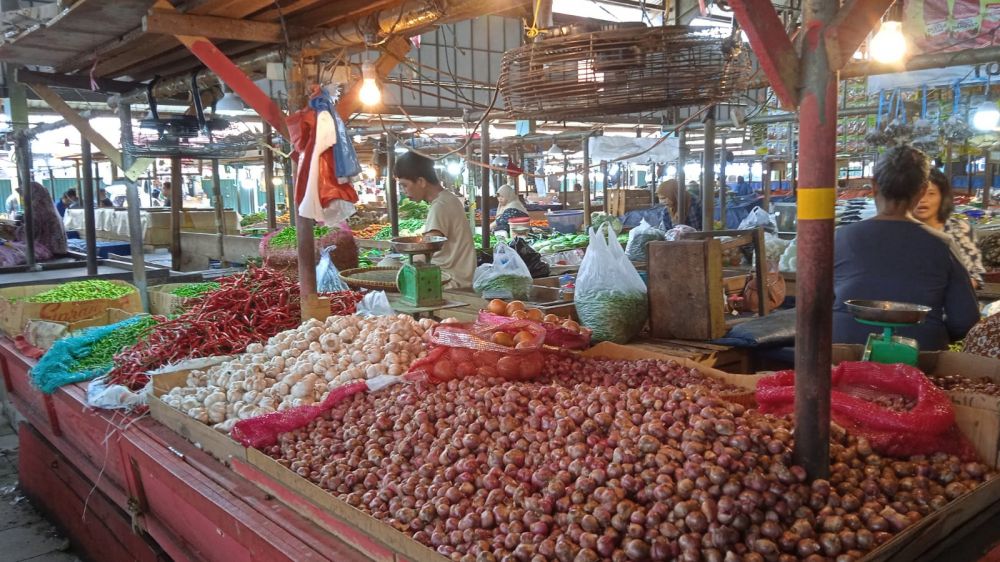 Cabai Merah Kecil Rp 36 ribu perkilogram, Cabai Rawit Hijau Rp 43 perkilogram, Cabai Rawit Merah Rp 46 perkilogram, Bawang Merah Rp 38 perkilogram.