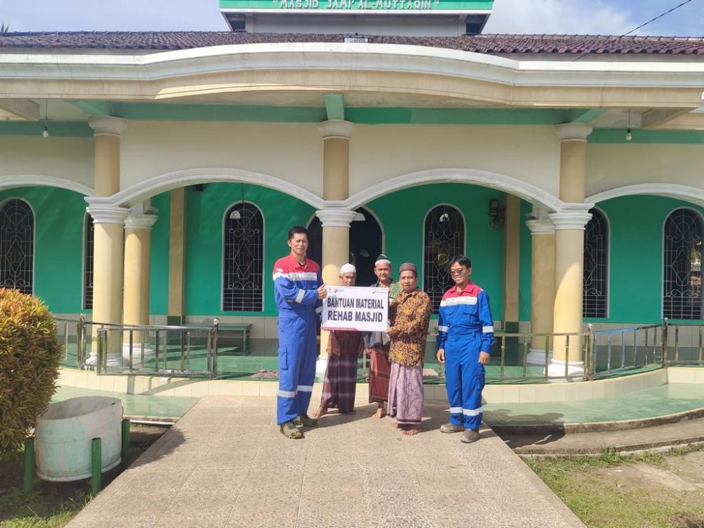 JAMBERITA.COM, PALI - KKKS Pertamina EP (PEP) Adera Field mendukung pembangunan sarana ibadah di sekitar wilayah operasi perusahaan dengan menyerahkan bantuan material untuk renovasi masjid Al-Muttaqin yang berlokasi di Desa Raja, Kecamatan Tanah Abang, Kabupaten Penukal Abab Lematang Ilir (PALI) pada Kamis (10/02).