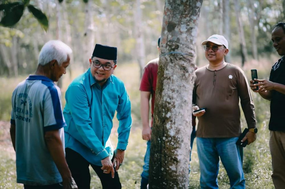 JAMBERITA.COM - Anggota DPRD Provinsi Jambi Ivan Wirata merasa takjub dengan Petani Karet di Pondok Meja yang kerap disapa dengan Mbah Kliwon. Pasalnya, sosok petani tersebut dimata Ivan, mampu memberi warna terhadap petani karet.