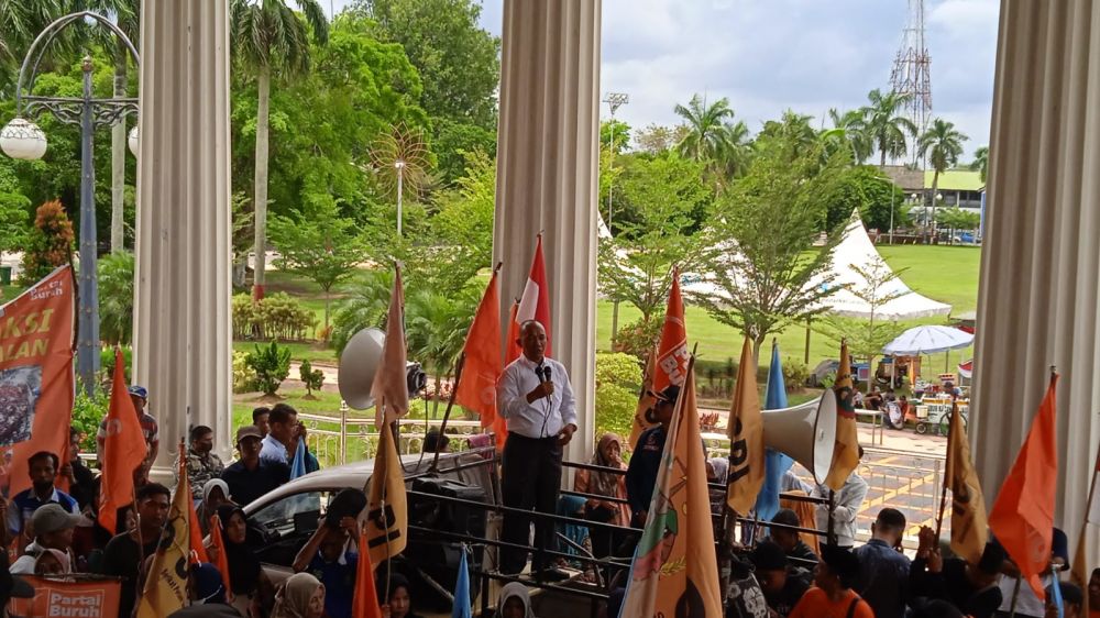 Setelah berorasi sekitar 30 menit, kedatangan para buruh ini diterima langsung oleh Asisten Admistrasi Umum (Asisten III ) Pemprov Jambi, Jancik Moza didepan buruh menyatakan sikap menerima tuntutan dari para buruh dan Ia berjanji akan menyampaikan aspirasi yang mereka bawa kepada Pemerintah Pusat.
