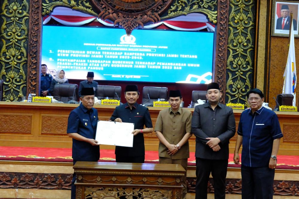 Persetujuan Ranperda tersebut termuat dalam Rapat Paripurna yang berlangsung pada Kamis malam (6/4) dengan agenda Pengambilan keputusan dewan terhadap Ranperda RTRW Provinsi Jambi tahun 2023-2043.
