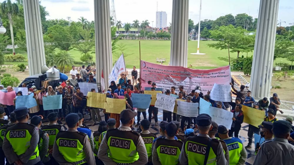 "Tuntutan kami ini tidak mengada-ada, gaji kami bulan Maret dan THR belum di bayarkan sampai saat ini," ucap Saman Masni.