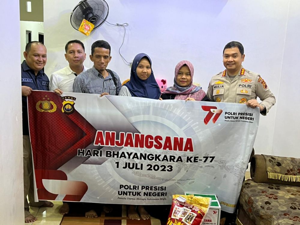 JAMBERITA.COM- Dalam rangka Hari Bhayangkara ke -77 tahun, Polda Jambi menggelar Anjangsana. Rumah pertama yang dikunjungi Polda Jambi yaitu kediaman Warakauri Polri Ny. Darmi Muliani Nasution, Istri (Alm) Bripka Ramadhansyah Siregar.