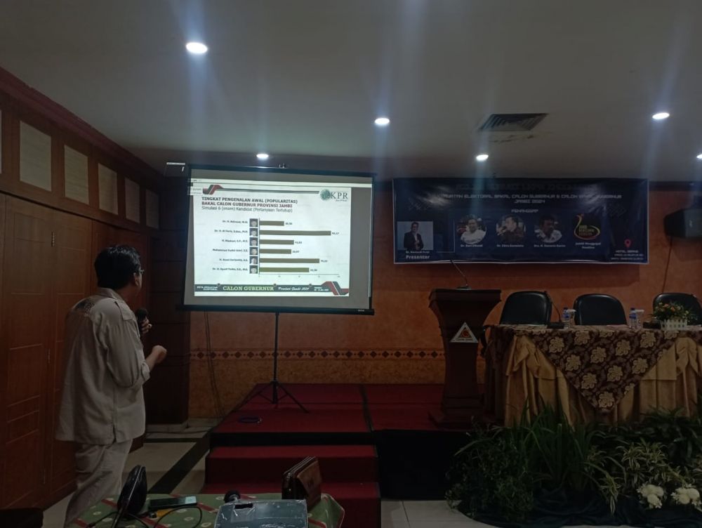 Hasil survei saat ini hasilnya, petahana Al Haris masih diposisi teratas diikuti Bupati Tanjab Timur Romi Haryanto dan Walikota Jambi Syarif Fasha.