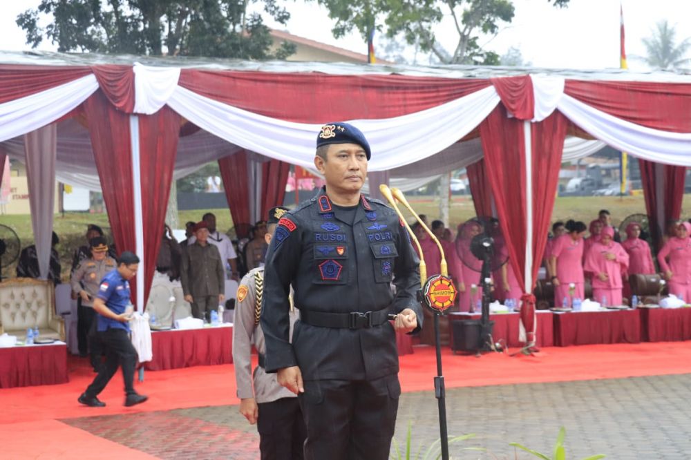 Upacara tersebut dipimpin langsung oleh Kepala Kepolisian Daerah Jambi Irjen Pol Rusdi Hartono, didampingi oleh Wakapolda Brigjen Pol Yudawan R, Pejabat Utama Polda Jambi, Dansat Brimob Polda Jambi Kombes Pol Nadi Chaidir, para Kapolres/Ta Jajaran Polda Jambi, serta anggota Brimob Polda Jambi.