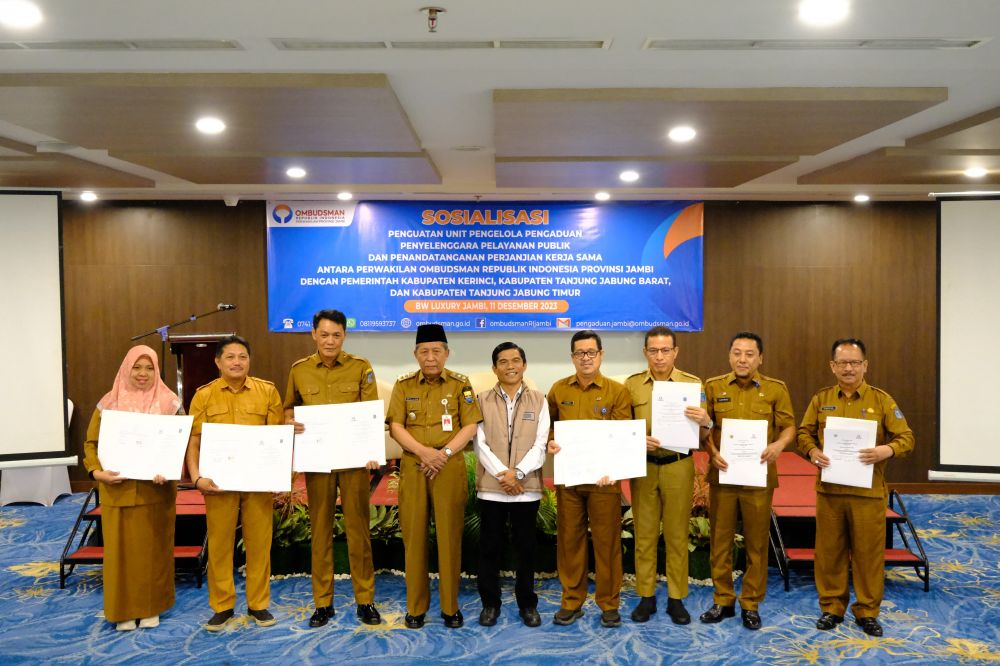 Ombudsman Republik Indonesia Provinsi Jambi dengan Pemerintah Kabupaten Kerinci, Pemerintah Kabupaten Tanjung Jabung Barat, dan Pemerintah Kabupaten Tanjung Jabung Timur, di BW Luxury Hotel,Kota Jambi. Senin (11/12/23).