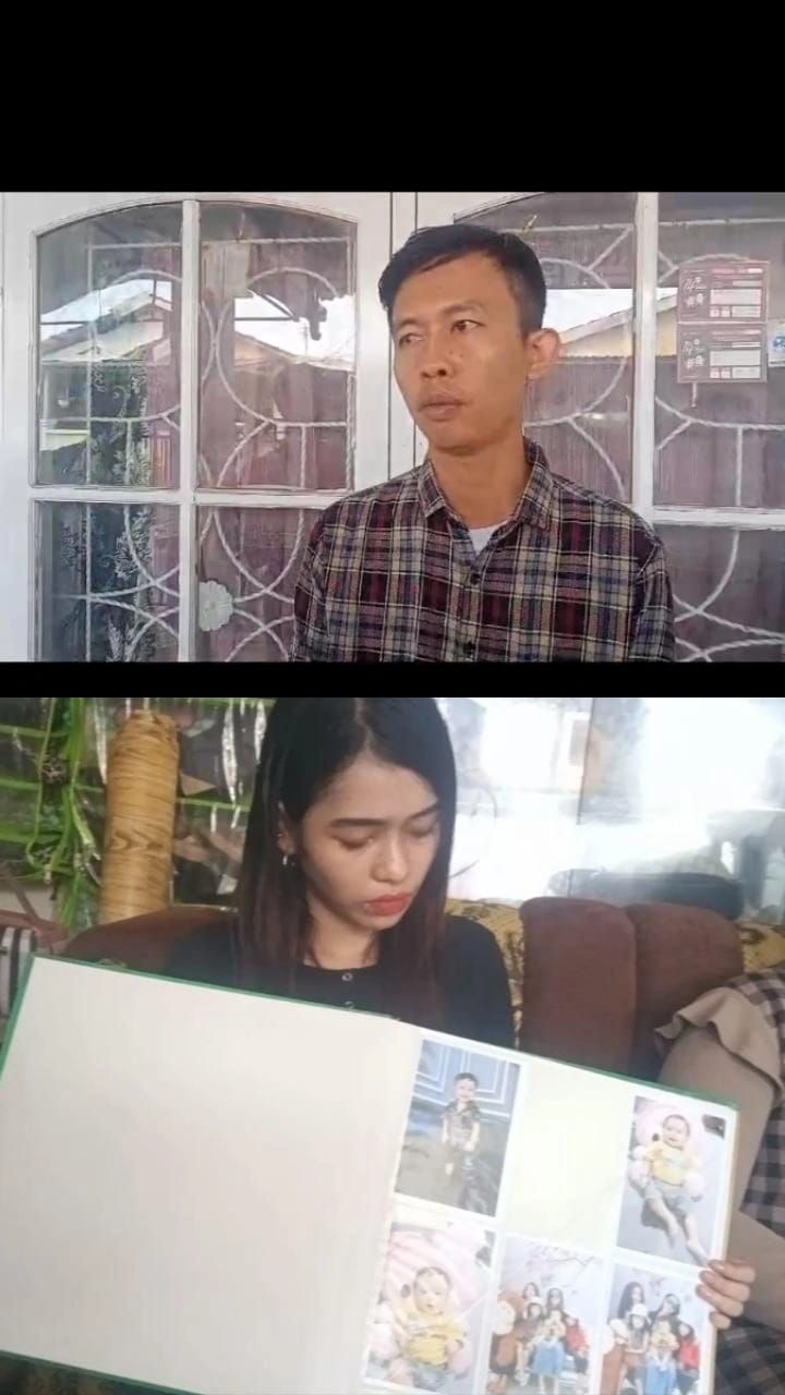 Sambil memegang dan melihat foto sang anak, Nanda Yulfa menunjukkan ekspresi sedih.