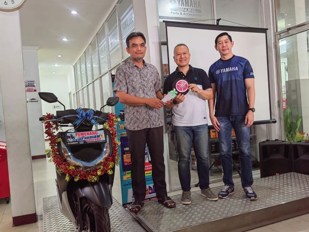 JAMBERITA.COM- Yamaha Jambi memberikan penghargaan dan apresiasi kepada pelanggan setia berupa satu unit sepeda motor.