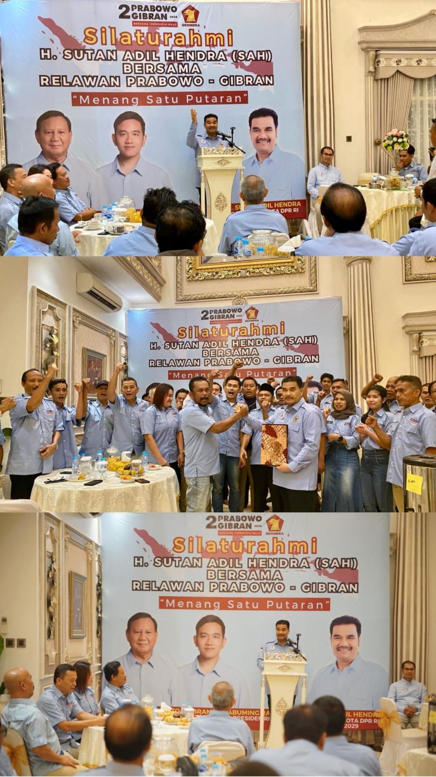 Hadir dalam acara di kediaman pribadi SAH di kawasan Telanaipura, dihadiri puluhan Ketua organisasi relawan Prabowo Gibran yang ada di Provinsi Jambi. Tampak hadir Idaman GA Ketua Relawan PROJO, Ricky Lumban Gaol Sekretaris Relawan PROJO, H. Muhammadiyah, SH, MH Ketua Relawan PRABU, H. Paut Syakarin Ketua Relawan SETIA PRABOWO, Dr. Iskandar Budiman Ketua Relawan BERSATU USUNG PRABOWO SUBIANTO, Rudy Ketua Bolonemase, Eric P. Sinaga Ketua Sedulur Jokowi, Kurniawan Gusti Ketua Relawan Patriot Desa Nasional, M. Rosyadi Ali Ketua Penerus Negeri, Diza Aljosha Hazrin Ketua Barisan Pengusaha Pejuang, Fadhillah Hasrul Wakil Ketua Barisan Pengusaha Pejuang, Al Haafizhussayuty Ketua Relawan Pengusahan Nasional, Perimon Juli Ketua Jaringan 98, Mezi Arsento Ketua Pandawa 5 Provinsi Jambi, Saktiawan Ketua Pandawa 5 Kota Jambi, Fredy Angriawan Ketua Relawan PRIDE, Novianto Ketua REJO PRO-GIBRAN MILLENIALZ, Mr. Jelly Bangun Ketua PROBO 08, Andi Sijid Ketua Gerakan Cinta Prabowo Subianto, Boy BRJ Nababan Ketua BARA JP, Hari Hariadi Ketua GNCP, Alamsyah Ketua Sahabat Prabowo Indonesia, Irwanto Ketua Prawiro Indonesia Garuda Merah Putih, Dewa Wirdan Ketua Brader Prabowo Gibran, Ali Nur Rokhmat Ketua Gerakan Masyarakat Bahar Bersatu, Ali Azabili Ketua Barisan Relawan Prabowo Nusantara, Wandy Pranata Ketua NAWASENA 08, Eldaniel Ketua BETA Gibran, Wahyu Ketua Indonesia Prabowo Menang, Admiral T. Kusuma Ketua Gerakan Nasional Patriot Pejuang Prabowo-Gibran, Isnugroho Ketua Prabowo Gibran Sungai Bahar, Wisbar Batubara Penasehat Laskar Millenial Prabowo-Gibran dan SAH Provinsi Jambi, Shakira Shalwa dan Harum Ramona Firdaus Sekretaris dan Bendahara Laskar Millenial Prabowo-Gibran dan SAH Provinsi Jambi.