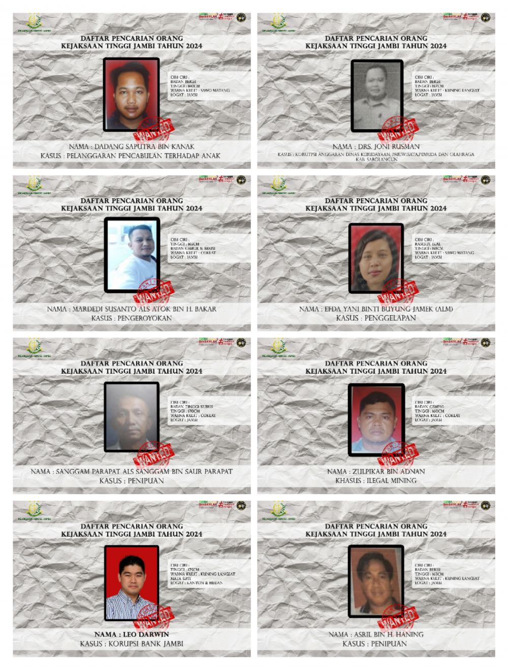 JAMBERITA.COM- Kejaksaan Tinggi (Kejati) Jambi masih memburu 8 orang yang masuk dalam Daftar Pencarian Orang (DPO).