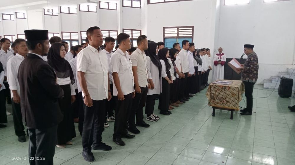 JAMBERITA.COM - Panitia Pengawas Kecamatan (Panwascam) Muara Sabak Timur melantik 110 Pengawas Tempat Pemungutan Suara (PTPS) untuk pemilu 2024, Senin (22/1/2024). Pelantikan sendiri digelar di Gedung Nasional Muara Sabak Ilir.