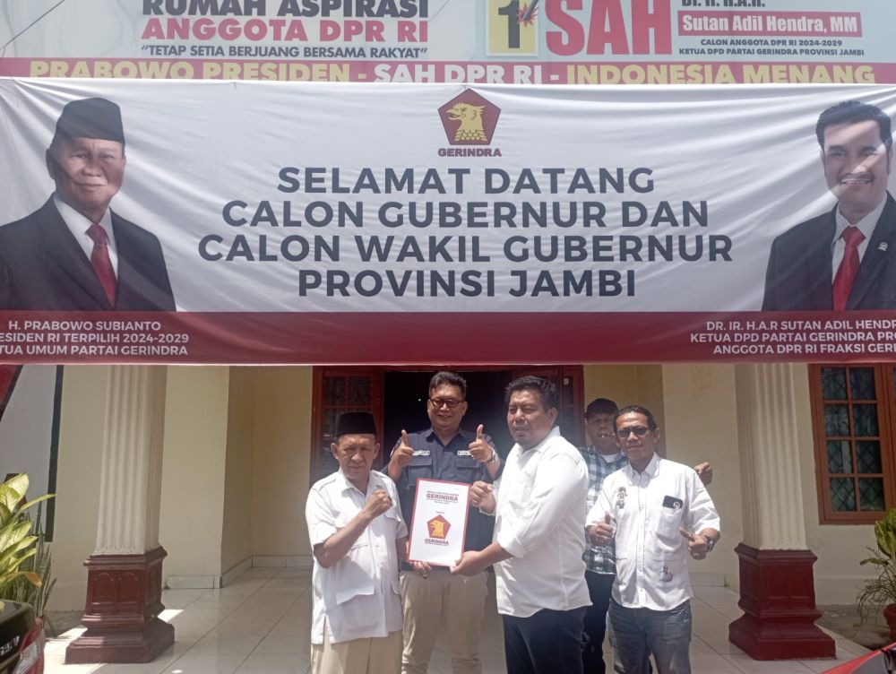 JAMBERITA.COM- Bakal calon gubernur Romi Hariyanto resmi mengambil formulir calon gubernur di Partai Gerindra Provinsi Jambi. Sabtu (27/4).