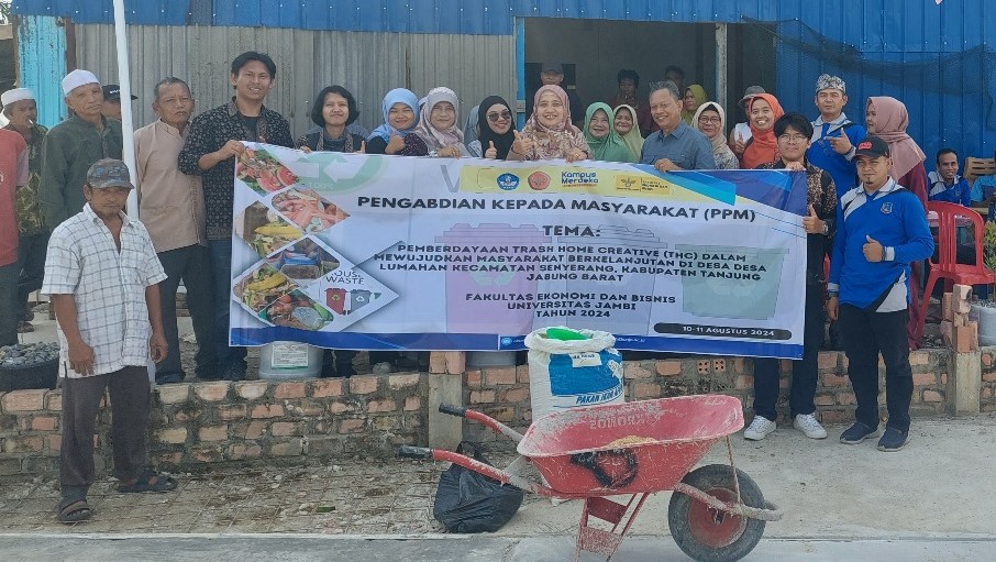 Kegiatan yang dilakukan oleh Tim Pengabdian Kepada Masyarakat (PKM) dari Prodi Ekonomi Pembangunan, Fakultas Ekonomi dan Bisnis, Universitas Jambi di Desa Lumahan dengan judul Pemberdayaan Trash Home Creative (THC) dalam Mewujudkan Masyarakat Berkelanjutan di Desa Desa Lumahan Kecamatan Senyerang, Kabupaten Tanjung Jabung Barat. Pengembangan Ekonomi Hijau Melalui Praktek Daur Ulang Sampah Organik menjadi Kompos di Desa Lumahan Kecamatan Senyerang, Kabupaten Tanjung Jabung Barat. Adapun Tim pengabdian terdiri dari dosen dan mahasiswa terdiri dari Prof. Dr.Junaidi., S.E., M.Si, Dra. Hardiani, M.Si, Parmadi, S.E., M.E, Dr. Hj. Erni Achmad, S.E., M.Si, Dra. Rahma Nurjanah, M.E. Serta beberapa dosen lainnya yang bersama-sama dosen-dosen dan mahasiswa dalam melaksanakan pengabdian diantaranya Dwi Hastuti, S.E., M.Sc, Dr. Siti Hodijah, S.E. M. Si, Dr. Etik Umiyati, S.E., Helen Parkhurst, M.Si, Faradina Zevaya, M.E, Fadwa Rhogib Asfahani, S.E., Wahdan Aidillah Amri Lubis, M. Havif Pratama Putra, dan Muhammad David.