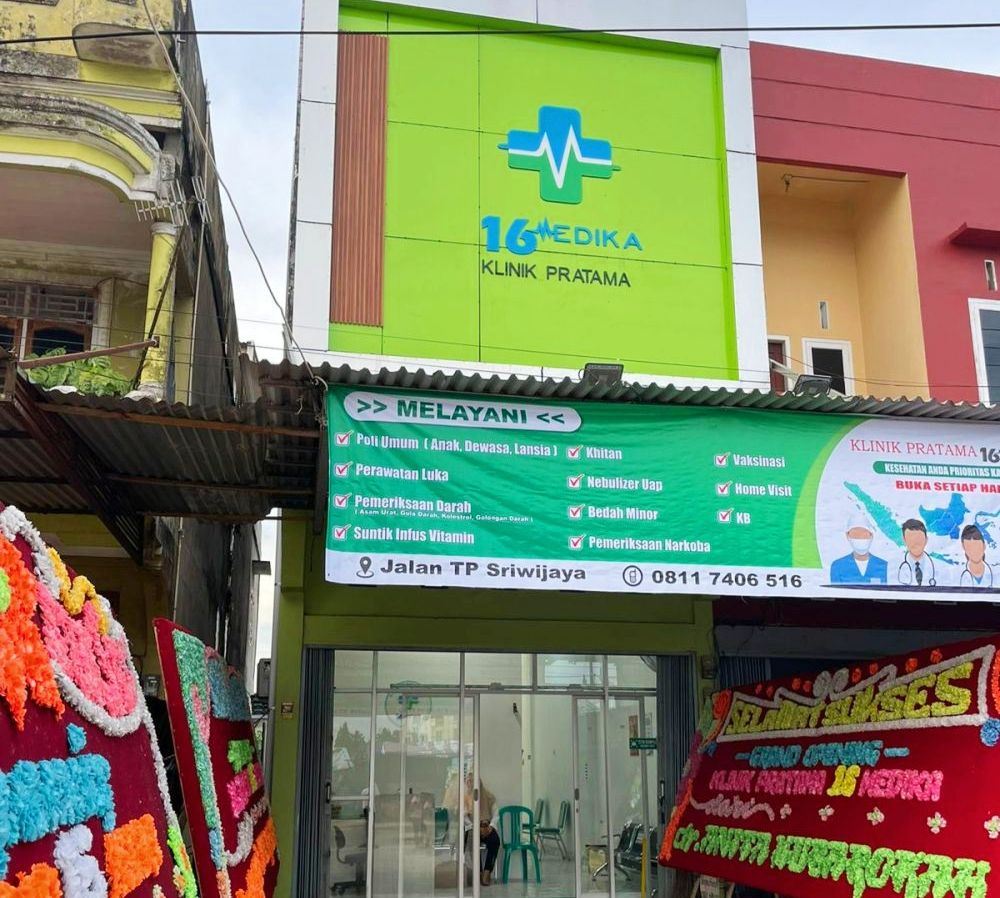 Layanan Klinik Pratama 16 Medika dibuka setiap hari dengan jenis layanan poli umum, perawatan luka, pemeriksaan darah (asam urat, kolesterol, gula darah dan golongan darah).