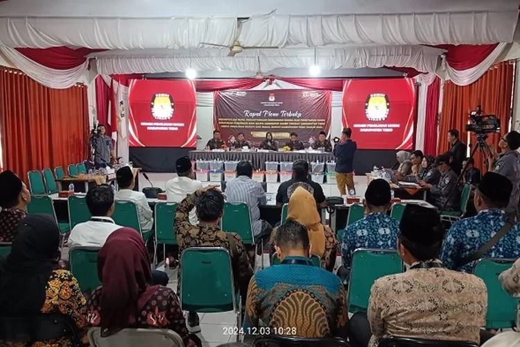 JAMBERITA.COM- Komisi Pemilihan Umum ( KPU ) Kabupaten Tebo menggelar rapat pleno terbuka rekapitulasi hasil penghitungan perolehan suara dan penetapan hasil Pemilihan Gubernur dan Wakil Gubernur Jambi tingkat Kabupaten Tebo serta Pemilihan Bupati dan Wakil Bupati Kabupaten Tebo tahun 2024 pada Selasa, 3 Desember 2024.