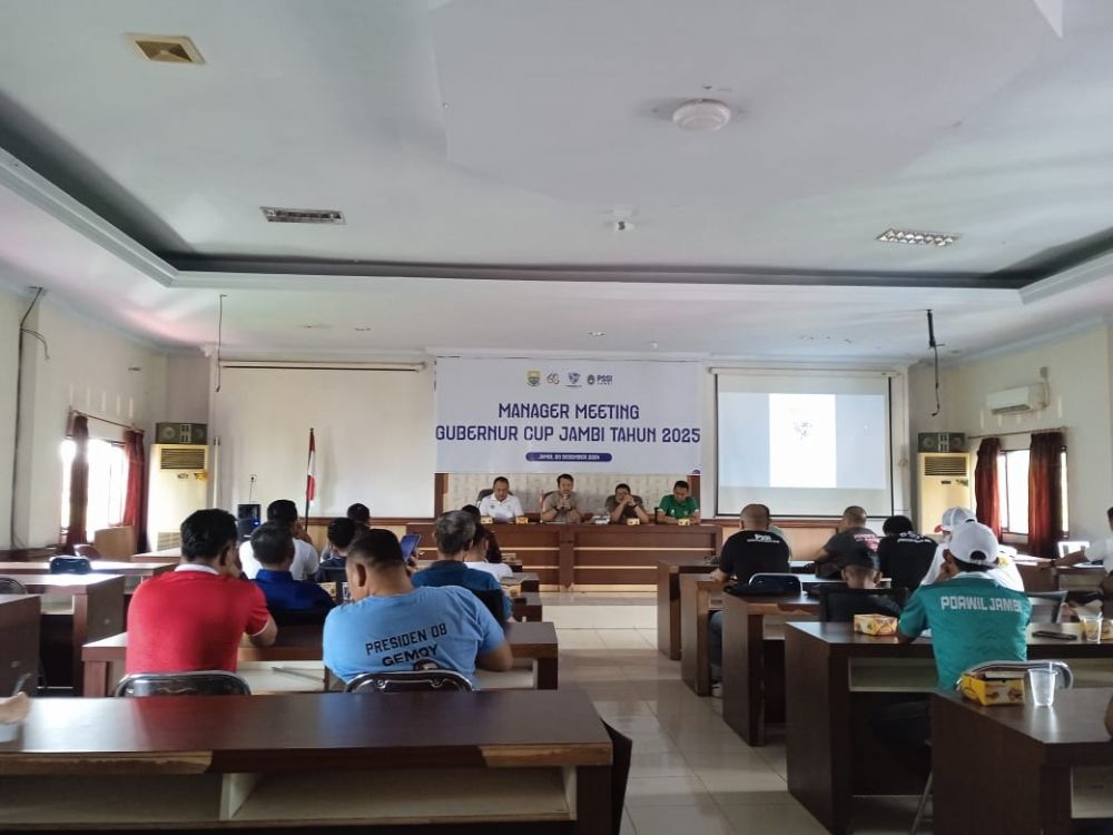 JAMBERITA.COM - Dinas Pemuda dan Olahraga (Dispora) Provinsi Jambi mematangkan persiapan Gubernur Cup Tahun 2025 dengan menggelar Chef de Mission (Cdm) Meeting, Jum'at (20/12/2024) kemarin.
