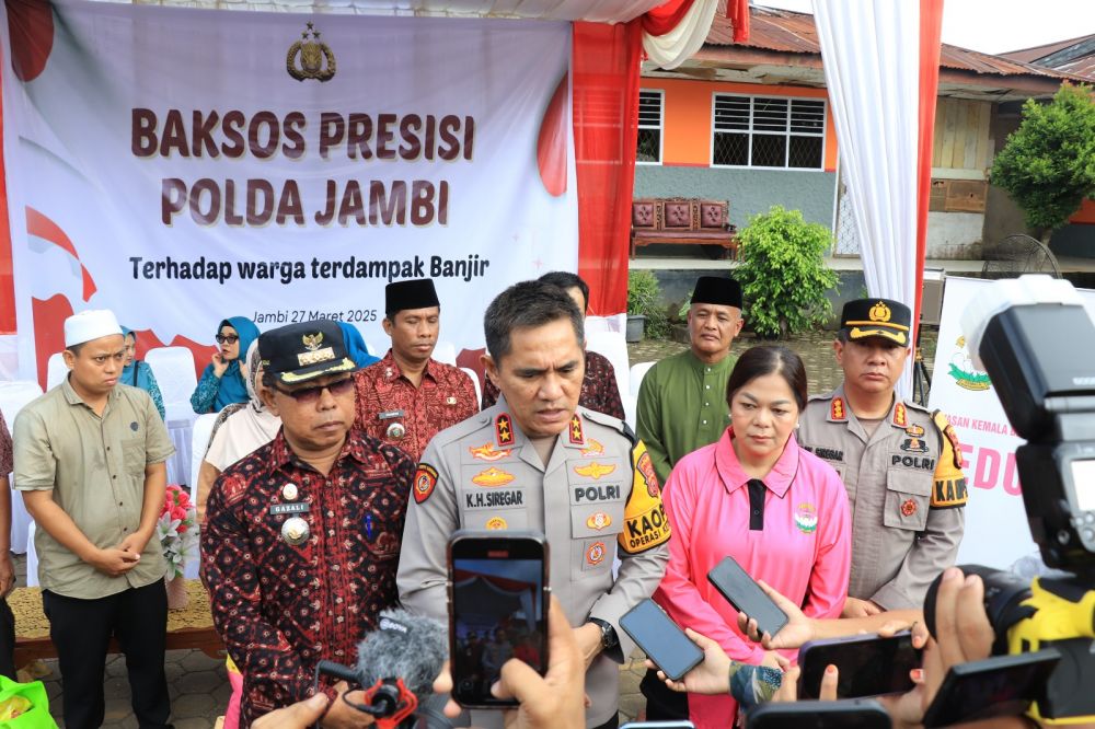 Kapolda Jambi mengatakan kegiatan bakti sosial ini merupakan bentuk kepedulian dan perhatian aparat kepolisian terhadap masyarakat yang mengalami kesulitan pasca bencana banjir kemarin.