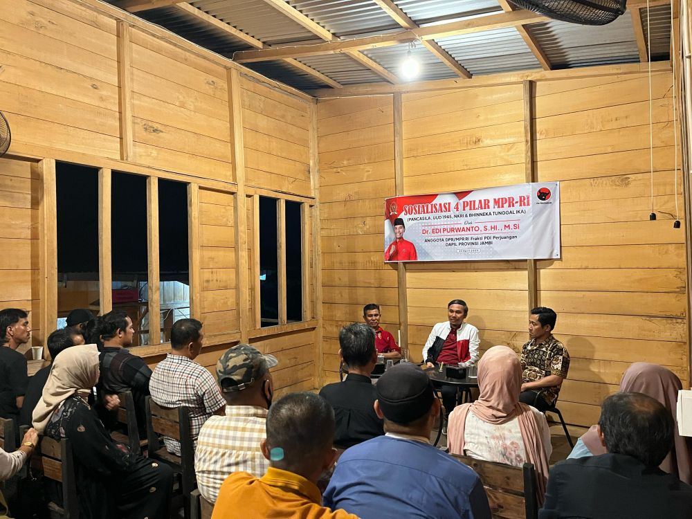 JAMBERITA.COM- Anggota DPR-MPR RI periode 2024-2029, Edi Purwanto menggelar kegiatan sosialisasi empat pilar kebangsaan di Kelurahan Pematang Sulur, Kecamatan Telanaipura, Jambi. Kegiatan ini sosialisasi ini melibatkan Organisasi Keris Siginjai (OKS) Jambi yang bertujuan untuk memperkenalkan dan memperdalam pemahaman masyarakat tentang nilai-nilai Pancasila, UUD 1945, Bhinneka Tunggal Ika, dan NKRI.
