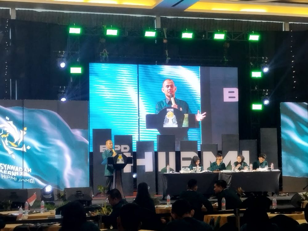 JAMBERITA.COM - Fadhilah Hasrul resmi ditetapkan sebagai Ketua Umum HIPMI Provinsi Jambi periode 2025-2028. Fadhilah Hasrul ditetapkan secara aklamasi. Hal ini dikatakan oleh Ketua Sidang, M Fahreza.