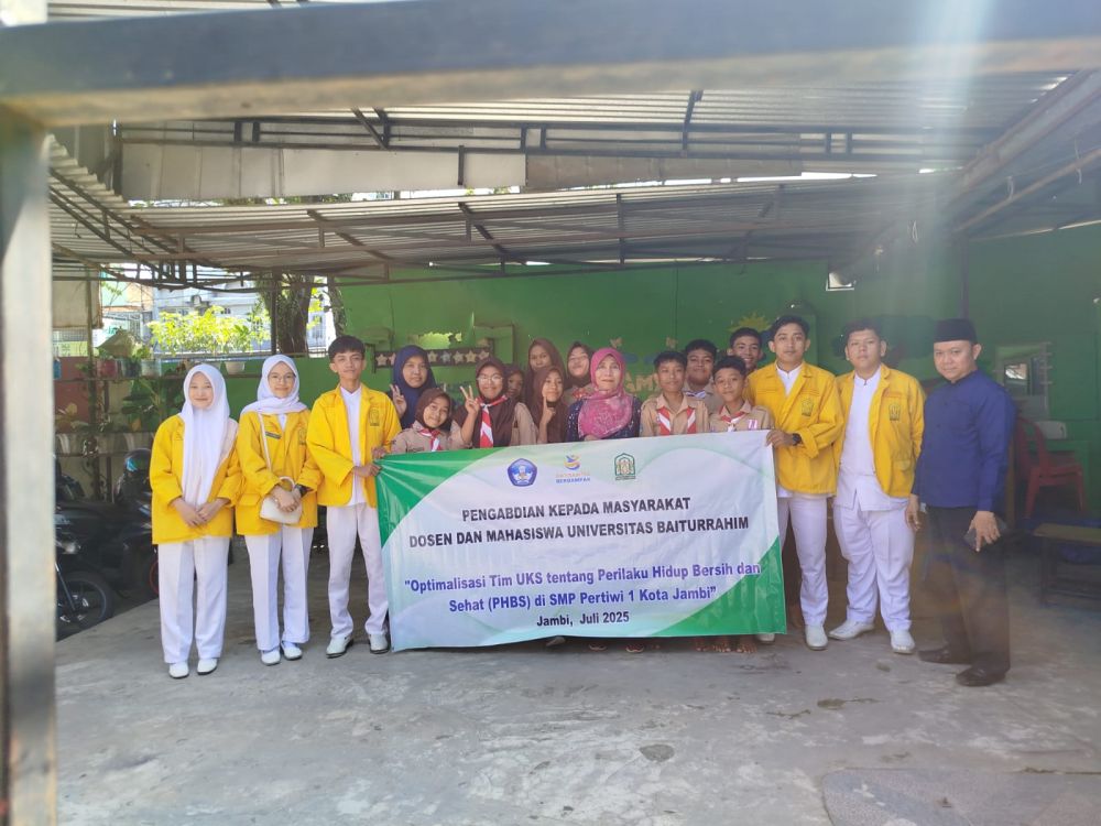 JAMBERITA.COM - Universitas Baiturrahim (UBR) Jambi mengedukasi pelajar SMP Pertiwi 1 Kota Jambi dengan mengoptimalisasi Perilaku Hidup Bersih dan Sehat (PHBS) serta menjaga lingkungan agar terhidar dari penyakit.