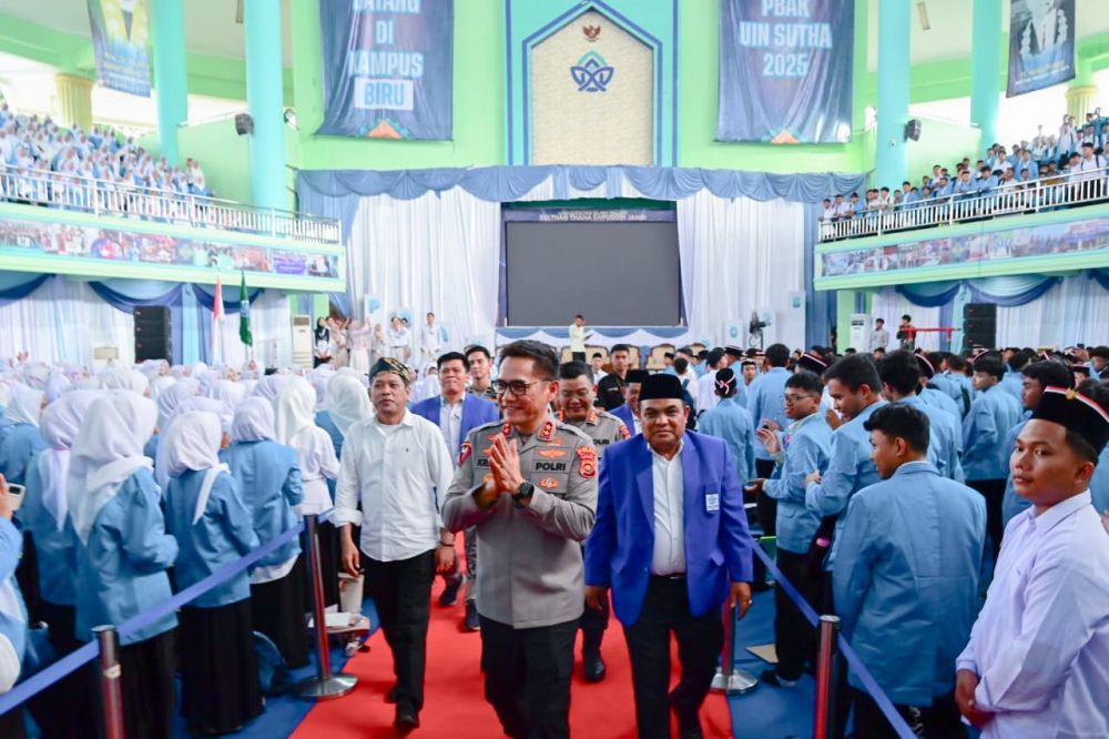 JAMBERITA.COM- Kapolda Jambi Irjen Pol. Krisno H. Siregar, menjadi narasumber dalam kegiatan Pengenalan Budaya Akademik dan Kemahasiswaan (PBAK) Universitas Islam Negeri (UIN) Sultan Thaha Syaifuddin Jambi yang digelar di Auditorium Chatib Quzwein, Senin (25/8/2025).