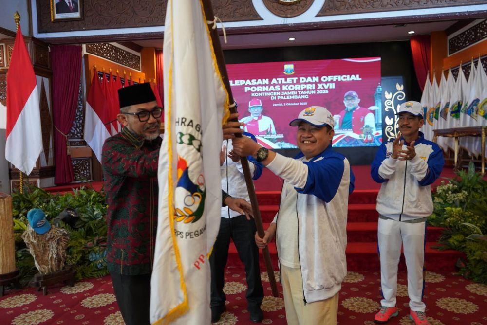 "Atas nama Pemerintah Provinsi Jambi, saya akan melepas 113 orang atlet Korpri Provinsi Jambi untuk mengikuti Pekan Olahraga Nasional Korpri Pegawai Republik Indonesia (PORNAS KORPRI) ke-17 Tahun 2025 di Provinsi Sumatera Selatan," lanjutnya.