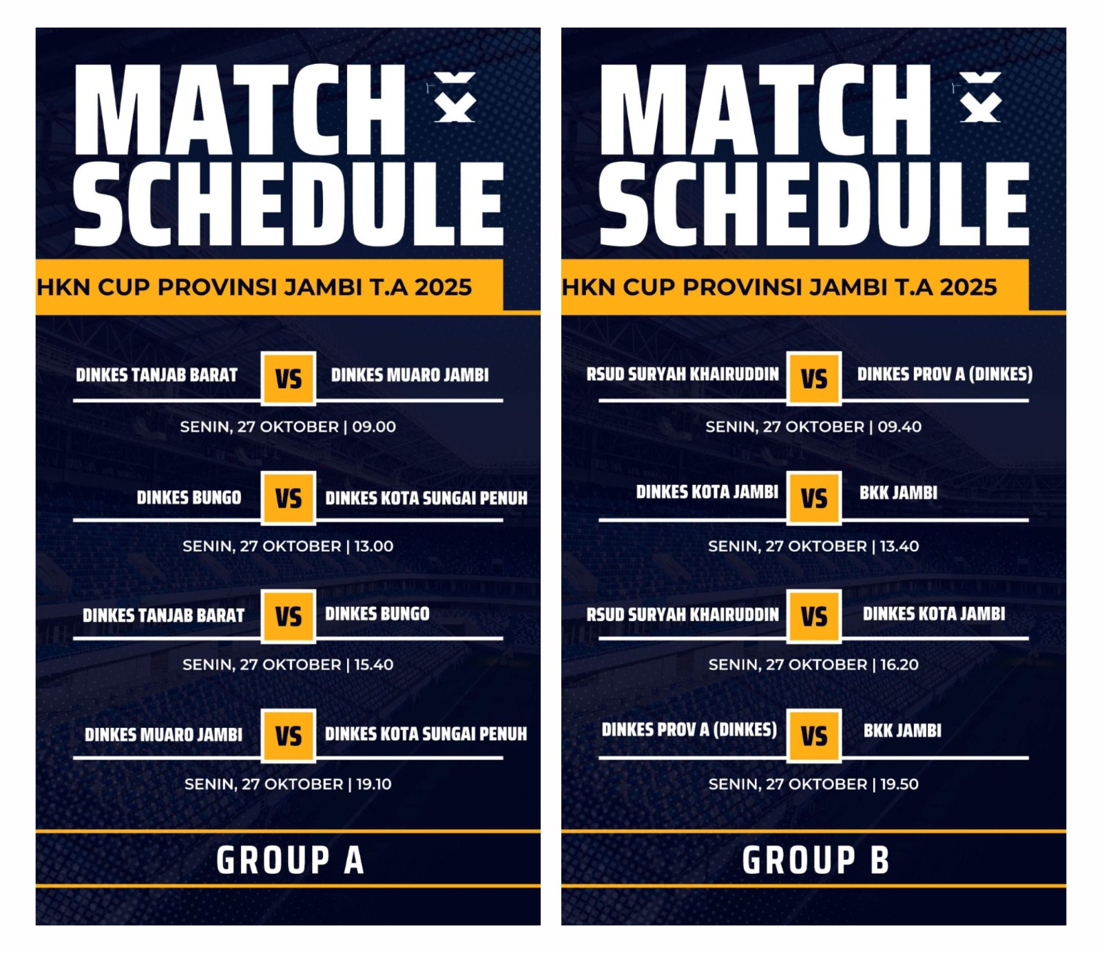 "Hari ini pembukaan, oleh Kadinkes Provinsi Jambi," kata Ketua Pelaksana Mini Soccer HPN, Mhd Darwis, Senin (27/10/2025). Darwis menjelaskan dalam pertandingan dilakukan pembagian antar grup, yakni Grup A, B, C dan D.