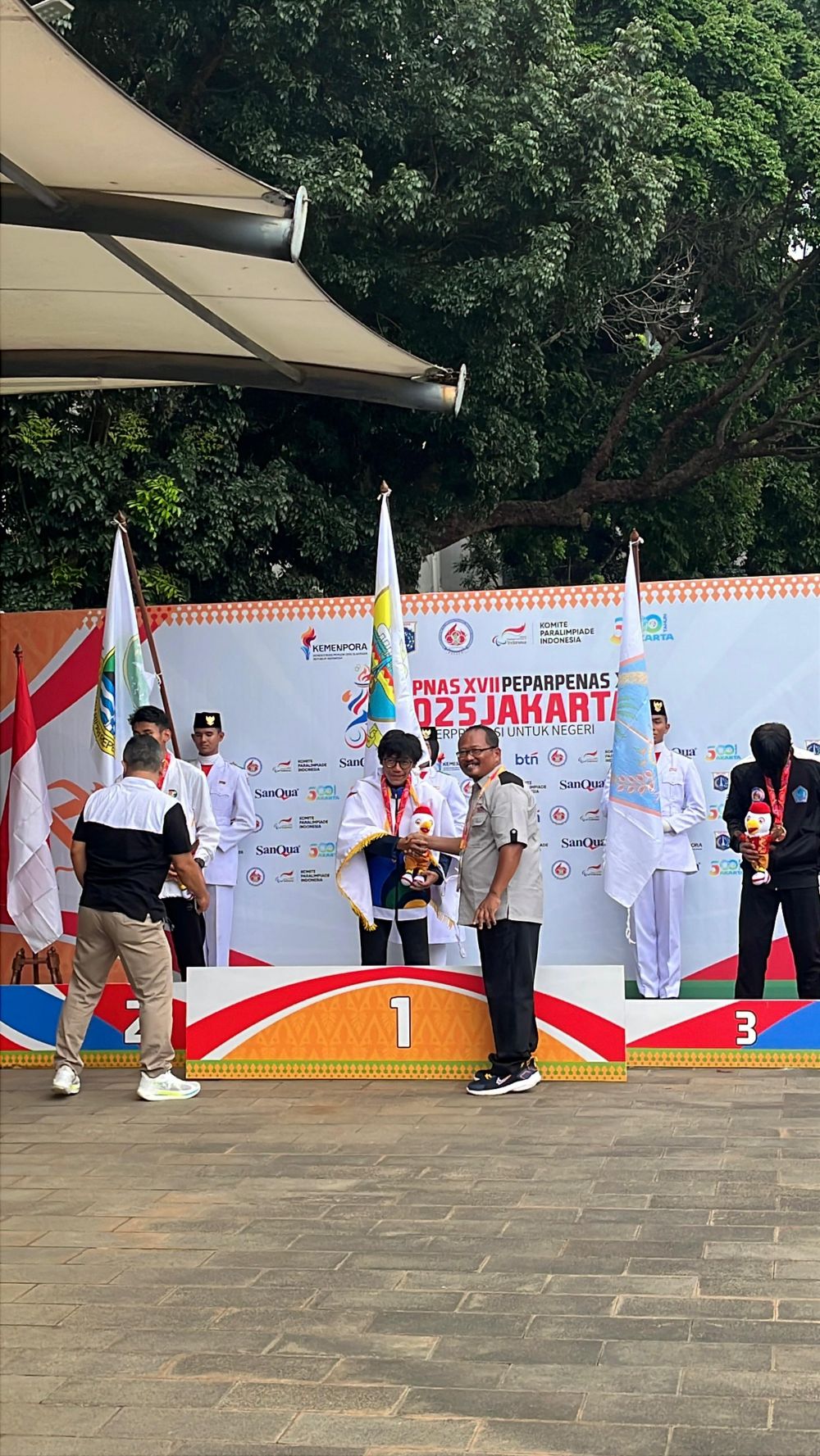 Medali emas tersebut diraih atlet low vission Rifki Dwi Putra. Kali ini dia turun di nomor pertandingan lari 200 meter putra kelas T13. Dia menorehkan catatan waktu 23,40 detik.