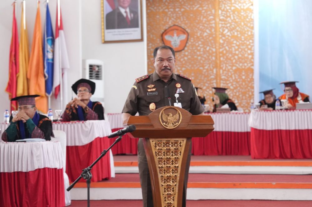 Kepala Kejaksaan Tinggi (Kajati) Jambi, Sugeng Hariadi, S.H., M.H., hadir memberikan orasi yang menyentuh sisi humanis para wisudawan. Di hadapan ribuan pasang mata, ia mengingatkan bahwa gelar akademik hanyalah angka jika tidak dibarengi dengan karakter yang kuat.