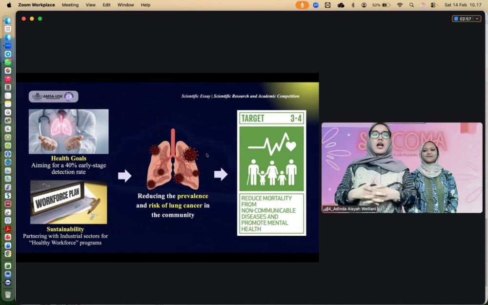 Melalui inovasi bertajuk SENTINEL, tim yang digawangi oleh Adinda Aisyah Welliani, Najwa Anindia Putri, Kireina Nurfadhillah, dan Nadir Indra Putra Tarigan (angkatan 2024) sukses meraih Juara 3 Nasional dalam kategori Scientific Essay pada ajang Scientific Research and Academic Competition (SARCOMA) 2026. Kompetisi bergengsi ini diselenggarakan oleh Asian Medical Students’ Association Universitas Syiah Kuala (AMSA-USK), Banda Aceh, pada 25 Januari hingga 15 Februari 2026.