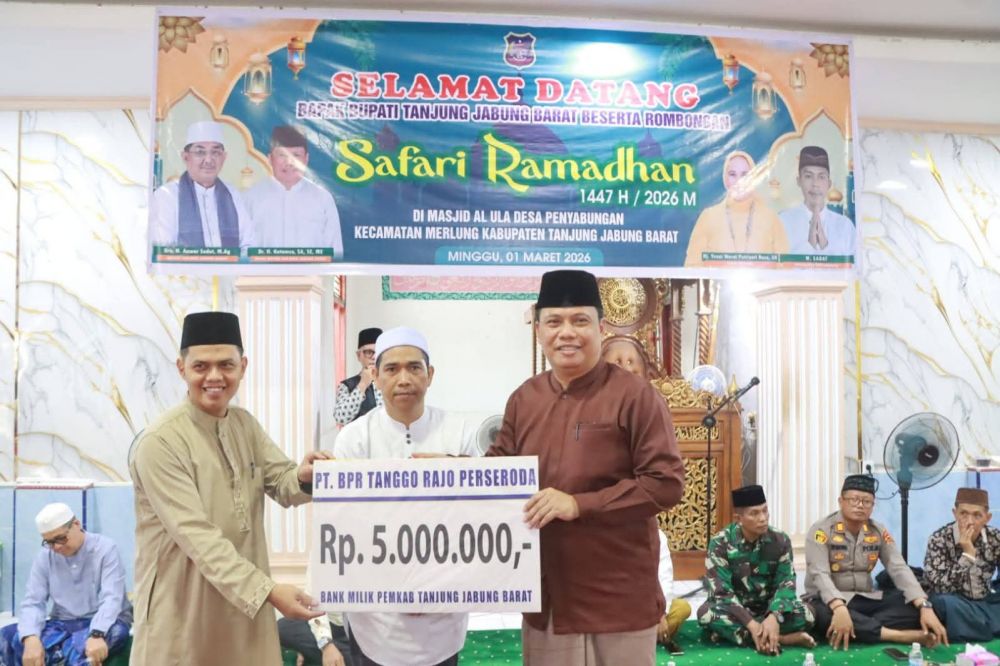 JAMBERITA.COM– Pemerintah Kabupaten Tanjung Jabung Barat menggelar Safari Ramadan di Masjid Al-ULA, Desa Penyabungan, Kecamatan Merlung, Minggu (01/03/26).